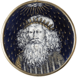 Two sides of Medallion with the Emperor Augustus’s Vision of the Virgin and Child by Limbourg brothers, c. 1420.